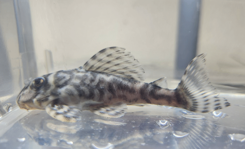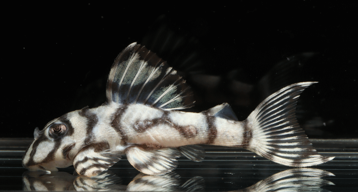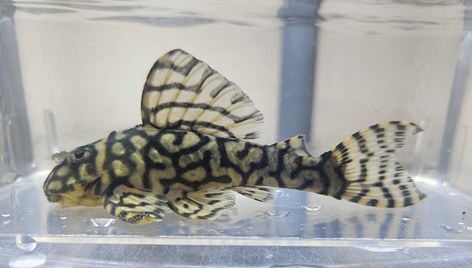 背ビレの柄が完璧なまでに メガクラウンゼブラの特徴がでております(ブラックトップ・ブラックエッジ・中ライン1本)