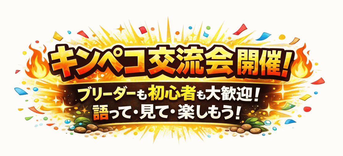 今回は相談会&即売会ということで、お客さんとブリーダーさんの交流の場を増やすことを目的とした、まったりしたイベントになればいいなと考えております。このように垣根を超えた交流を通してキンペコの世界が広がってくれたら嬉しいかぎりです