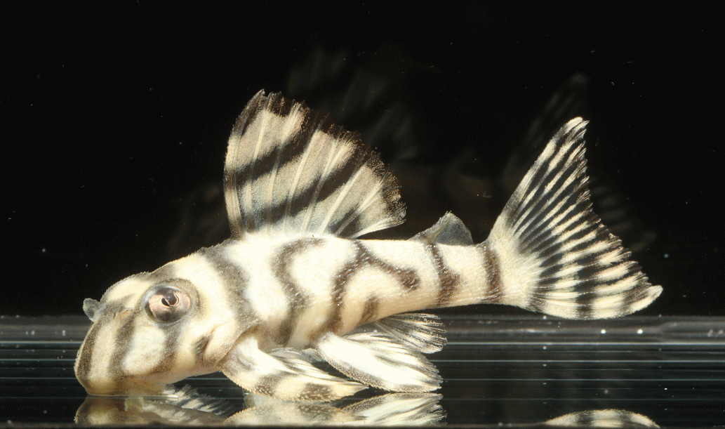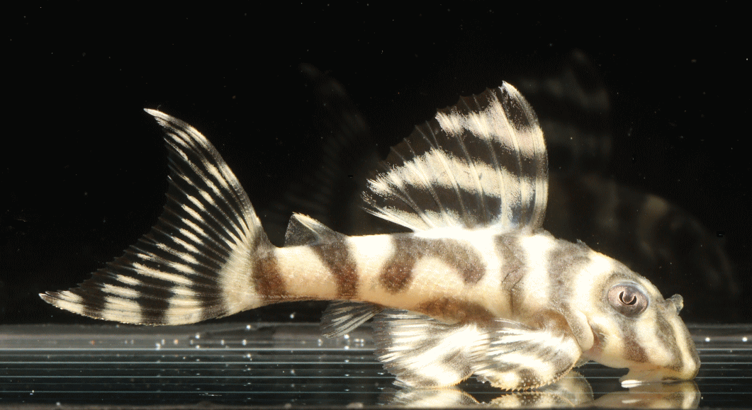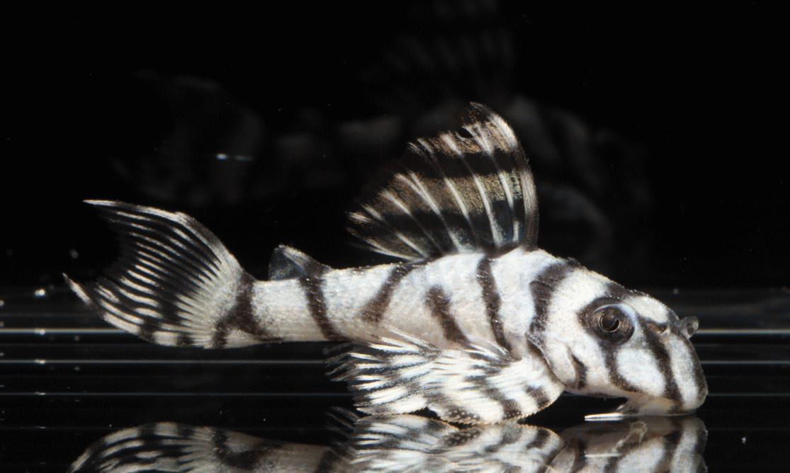 ① シルバーシャドーゼブラ finプシケの孫 第1セット No1 4.8cm ¥148000 プシケ白い三連星から数えてF2となる子供達です。さてこの子は未だ小さいのですが、お手本のような柄のシャドーでワタクシお気にいりの逸品でした。フィンの専属ブリーダーがオールで購入されたので、ひ孫を待ちたいと思います