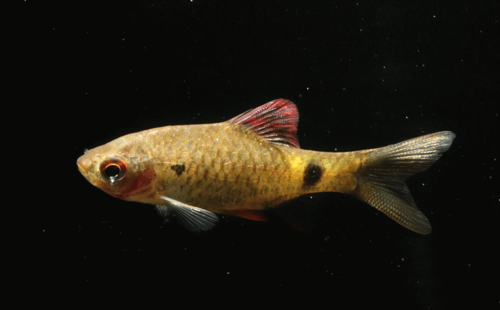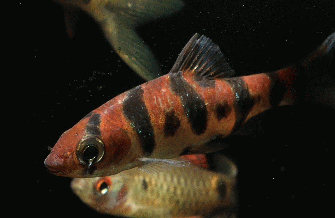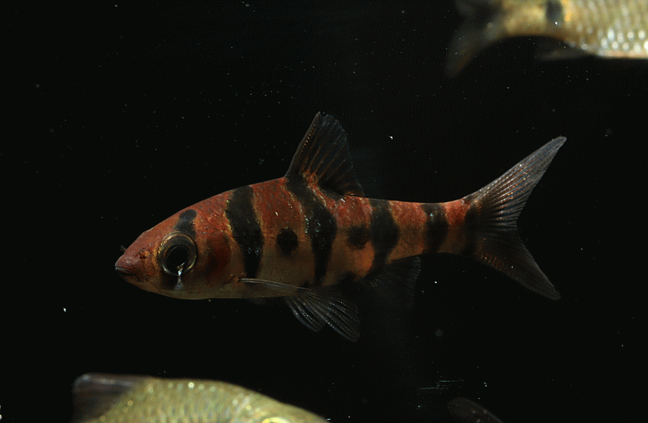 さてこのPethia stoliczkana、学名を直に読むと本当はストリクツカナと読むようなのですがストリッカーのほうが格好良いのでそのままで今後もいきます。種類的には色のない小型のオデッサに似た雰囲気ですが、こちらはよりスレンダーでエラブタ後方の斑紋が小さくスポット状。そして特筆すべきはこの背びれ。目の覚めるような朱色です!残り20匹ほどなのでお早めに ↓