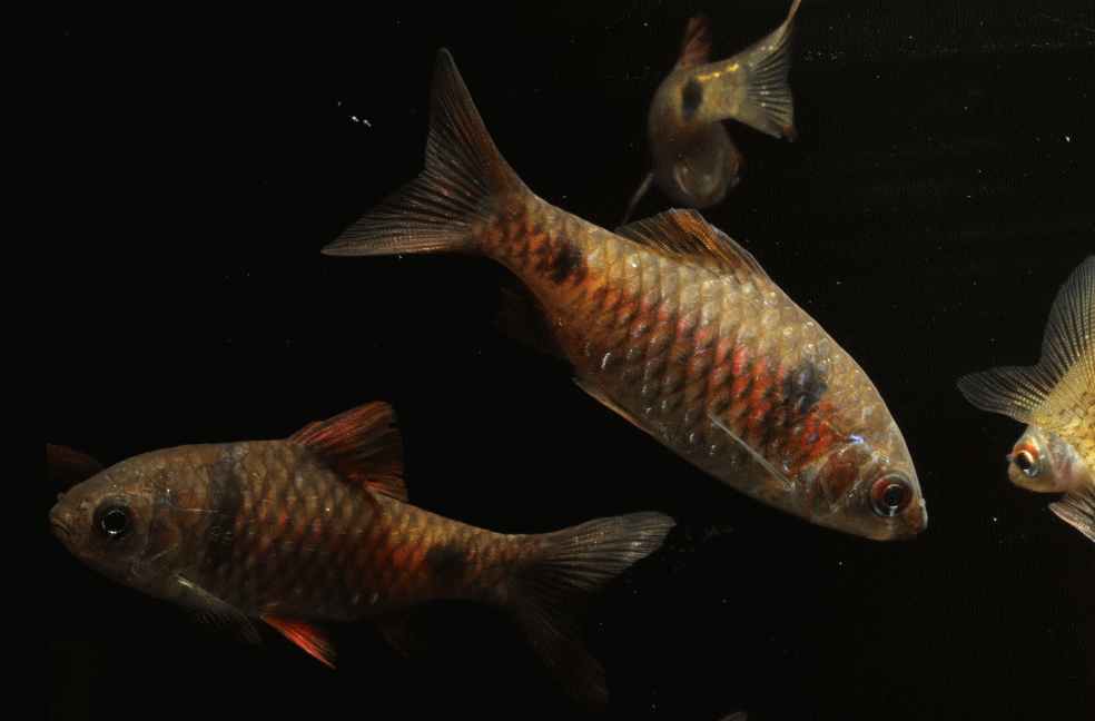 ② ワンスポットバルブ インド便 M~MLサイズ 3匹¥3000 Puntius cf. terio 似の体こうのあるバルブです。体色に深みが出てきました。残り2セット ↓
