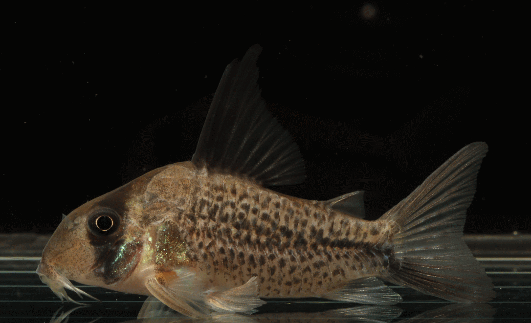 ② コリドラス テンテンアクセルロディ スーパーハイフィン Wild 4.3~4.5cm程 ¥5000 Wildのテンテンアクセルロディに混じる。ハイフィンを飼育していればこうなると思いますが・・・。スーパーハイフィンタイプは残り2匹となりました