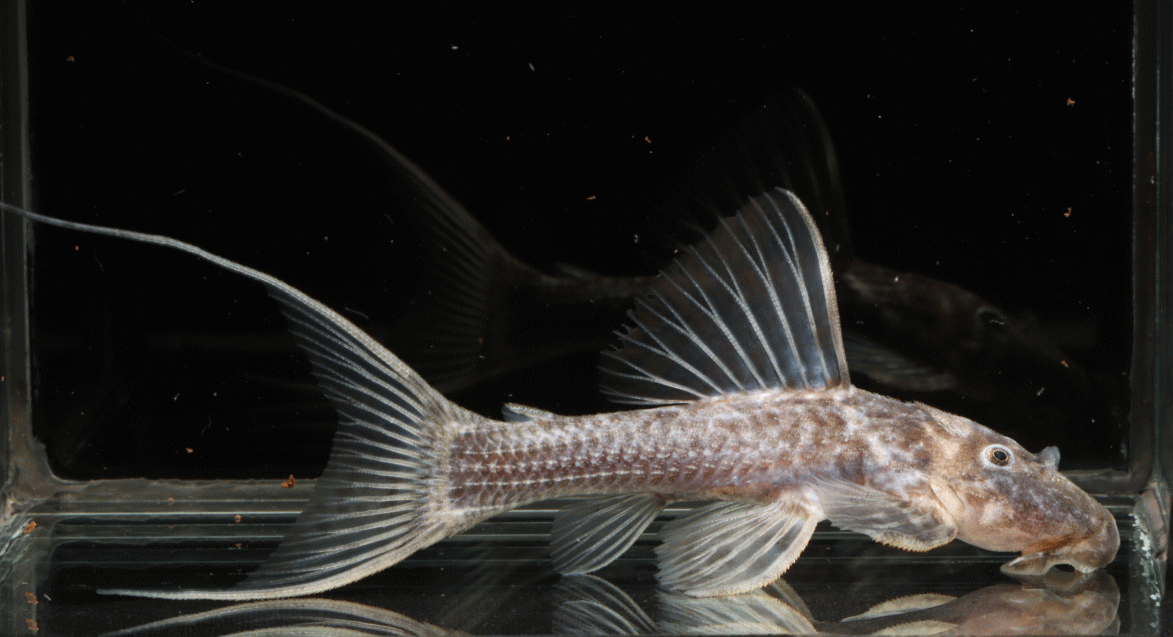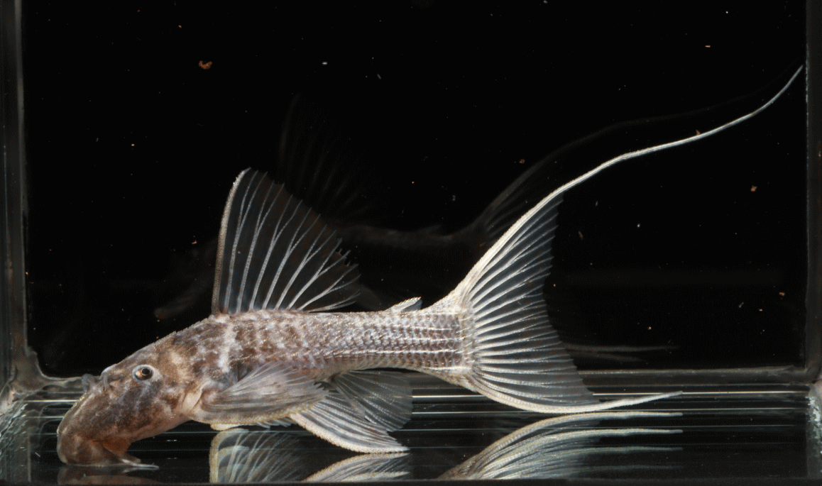① アカリエスピーニョ リオパラ Mサイズ( フィラメント入れず ) ¥23800 Pseudacanthicus histrix です。アマゾン中流の支流、タパジョス産ではなく マラジョー地域の支流、para川という産地名で輸入されたアカリエスピーニョです。そうであれば、頭部はあの苔が生えたようなグリーンモルフになってくれるのか?それなら素晴らしいな。限定3