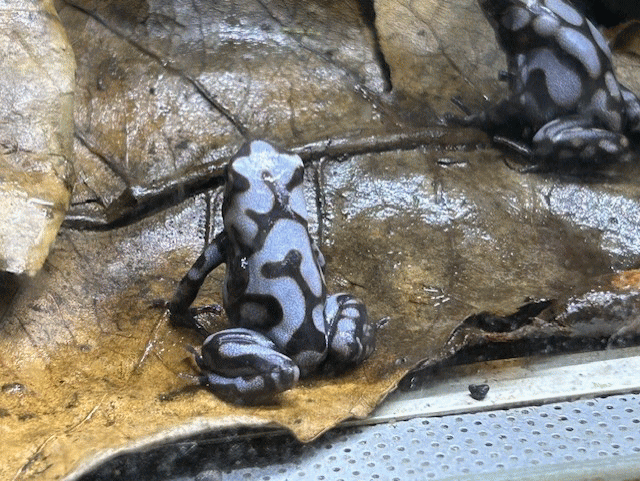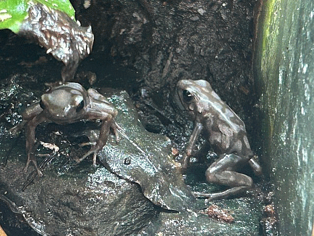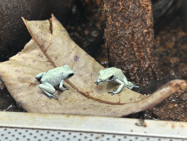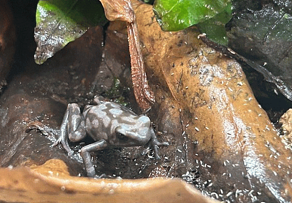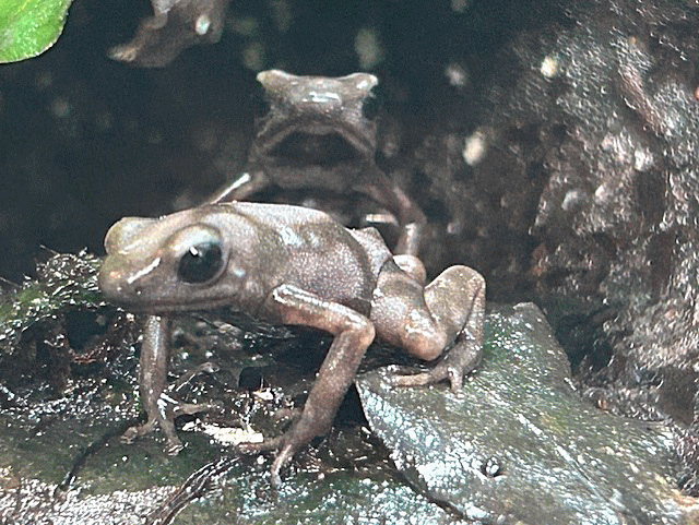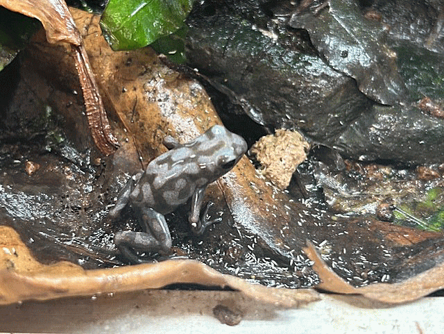 Dendrobates auratus “ Pena blanca ”です。2025年、当店生まれの子供達で、唯一たくさんの子供がとれた種類です。上陸後は身体全体が黒っぽくて なんの魅力も感じられないし、シャイで全く姿を見せてくれない