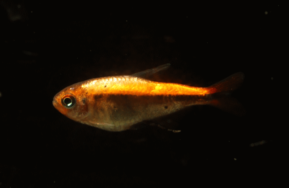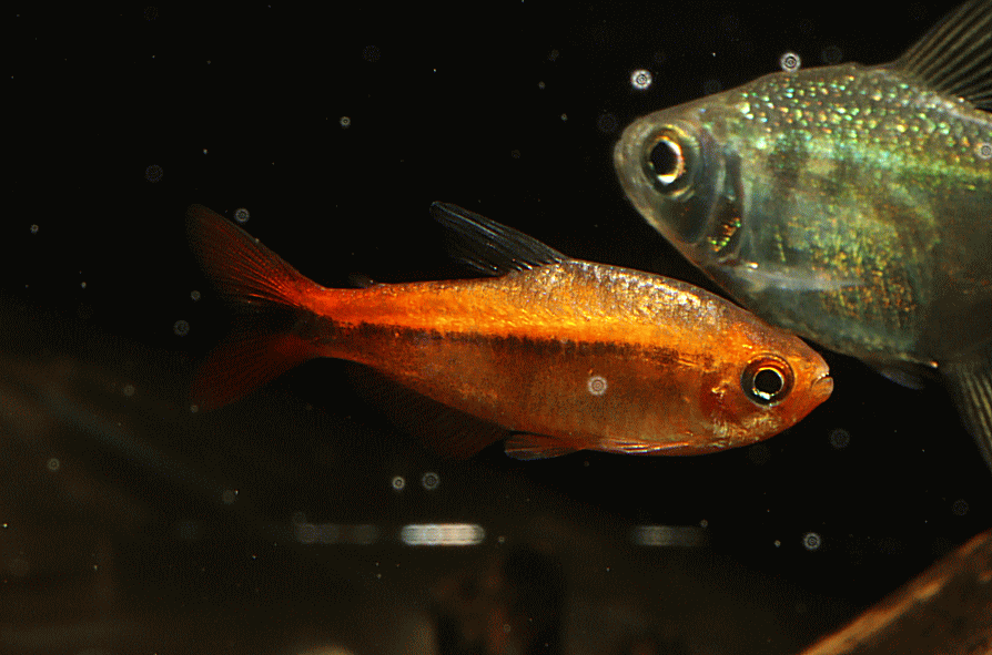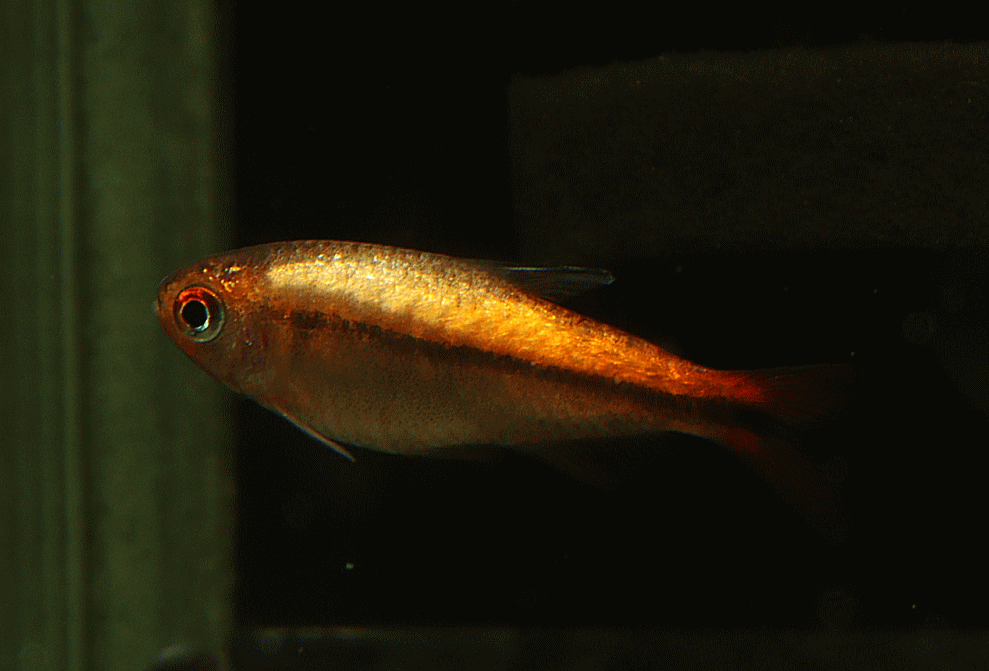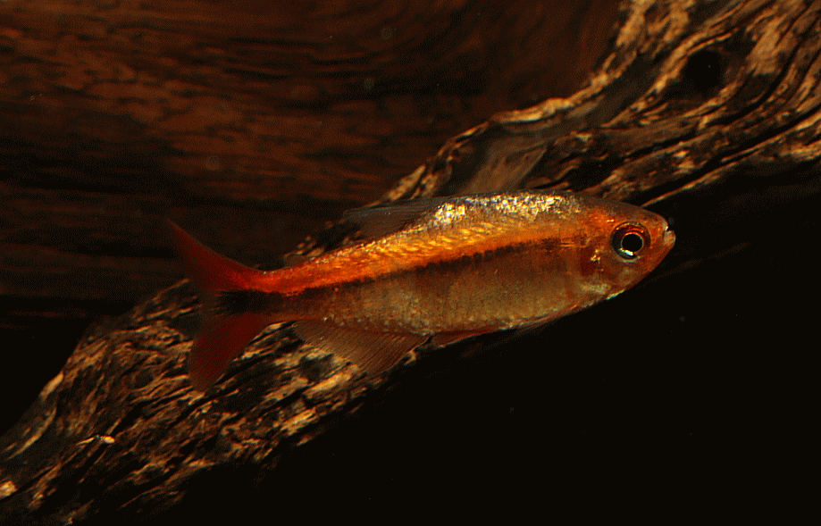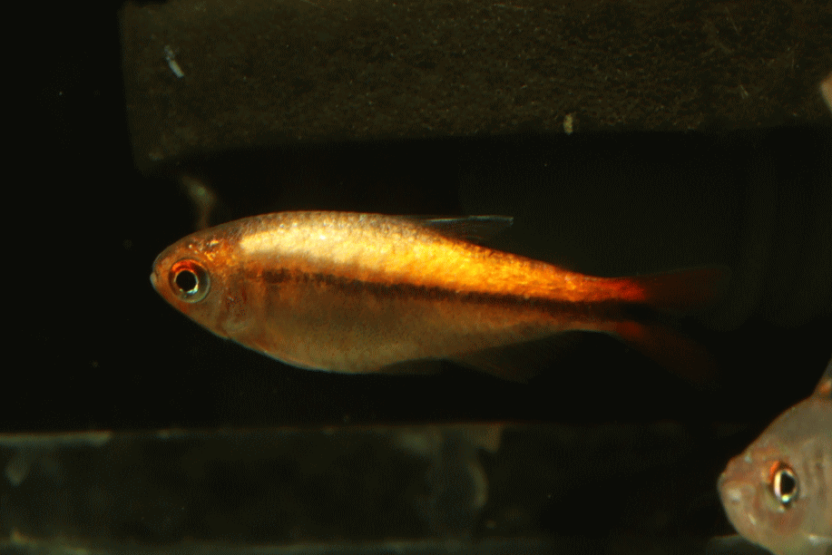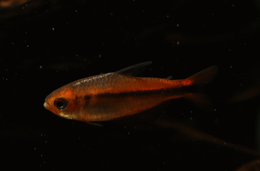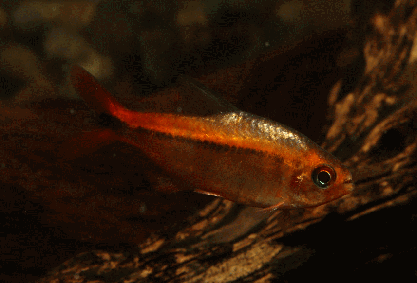 ① ハイフェソブリコン ミルメックス レッド 3cm程 ¥3980 ブラジル・マットグロッソ産の派手なテトラです。残り画像の1匹です ↓