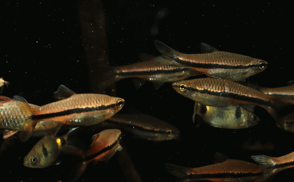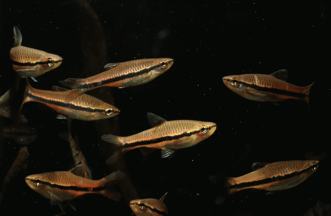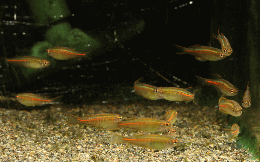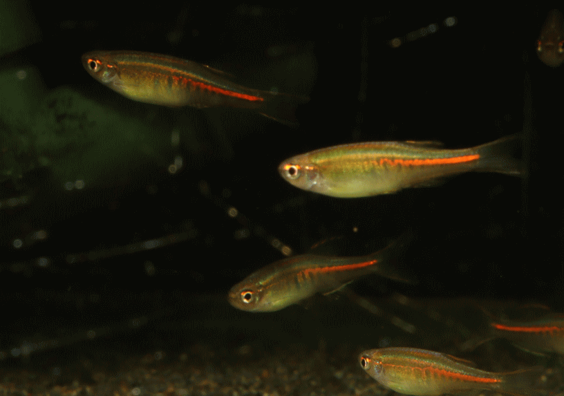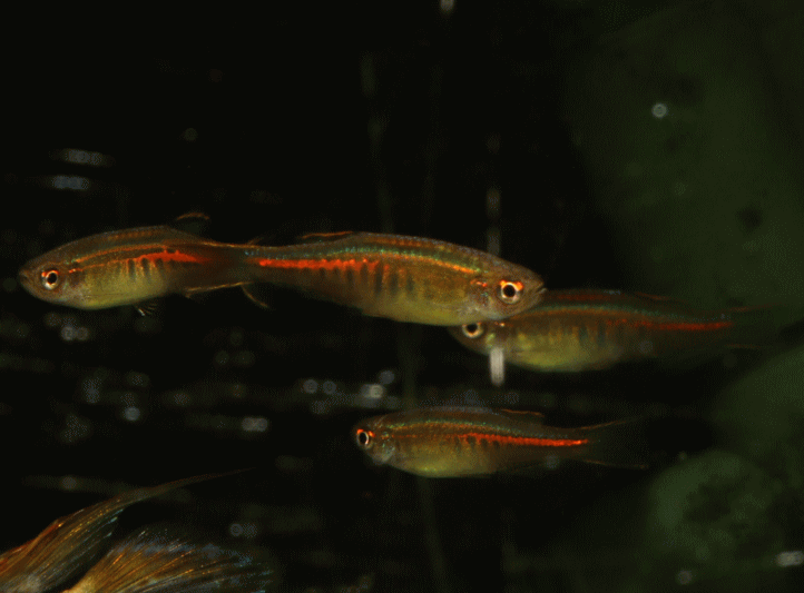 ① オレンジグリッターダニオ ミャンマー 2.5~3cm程 3匹¥1000 ミャンマーに生息する Danio choprai です。ダニオ属のなかで唯一無二なカラーを見せる小型のダニオ。よく泳ぎ飼育が容易でおススメ ↓