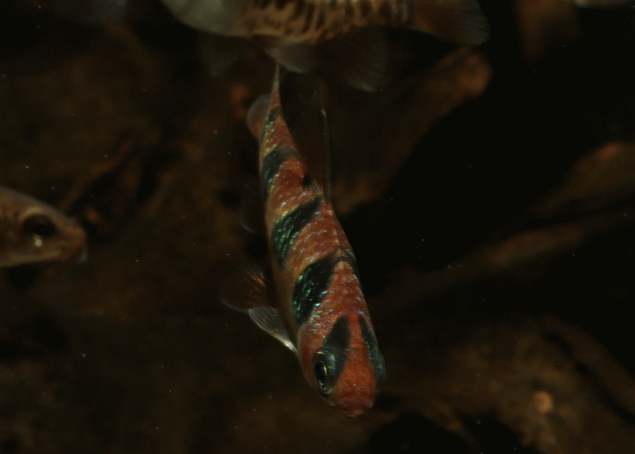 ② ホラダンティア アツコラリー インド 1.5cm程 5匹 ¥1200 インド便にてやってくるグローライトカープレットバルブと呼ばれる小さな小さなバルブです。水質は難しくないが、ビュンビュン泳がないので混泳には気をつけてください ↓