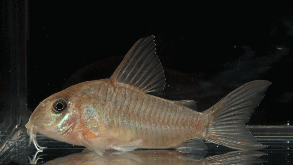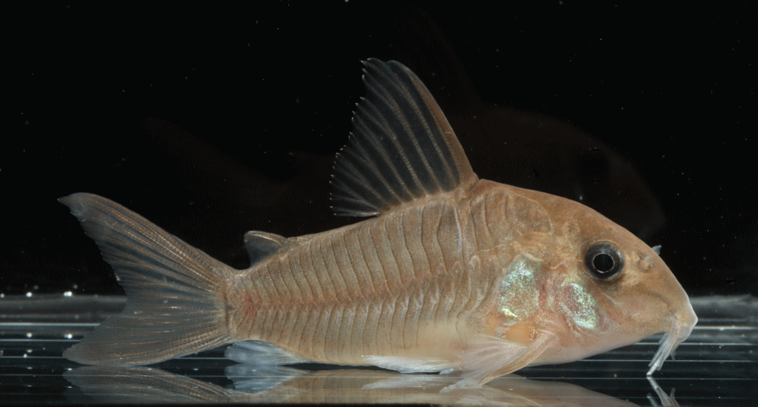 ④ コリドラス ホワイトヘテロモルフス 6.8cm ¥29800 ヘテロモルフスのオレンジタイプのほう。真正ロングですが独特のスリナム顔。在庫は1匹です