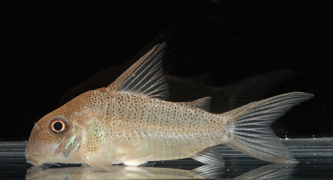 ② コリドラス スターダストアウル スリナム 5.7cm ¥24000 スターダストアウルとはフクロウの顔つきからついた名。この個体はよりフクロウ寄りの顔つきで非常に良い ↓