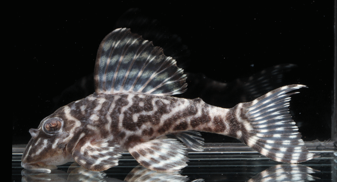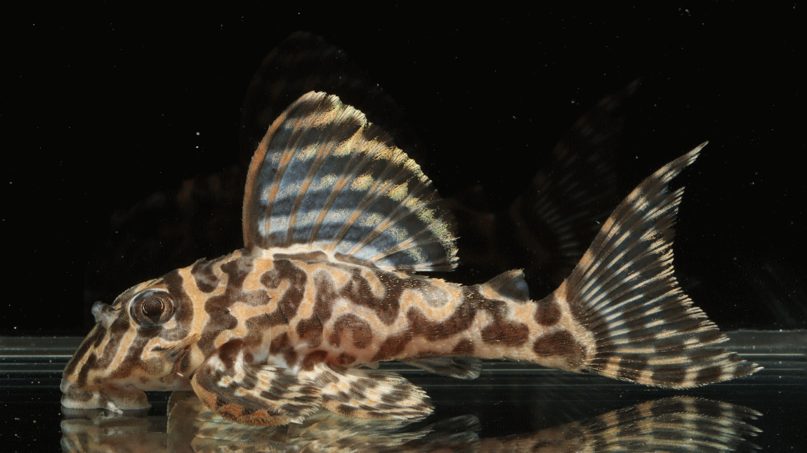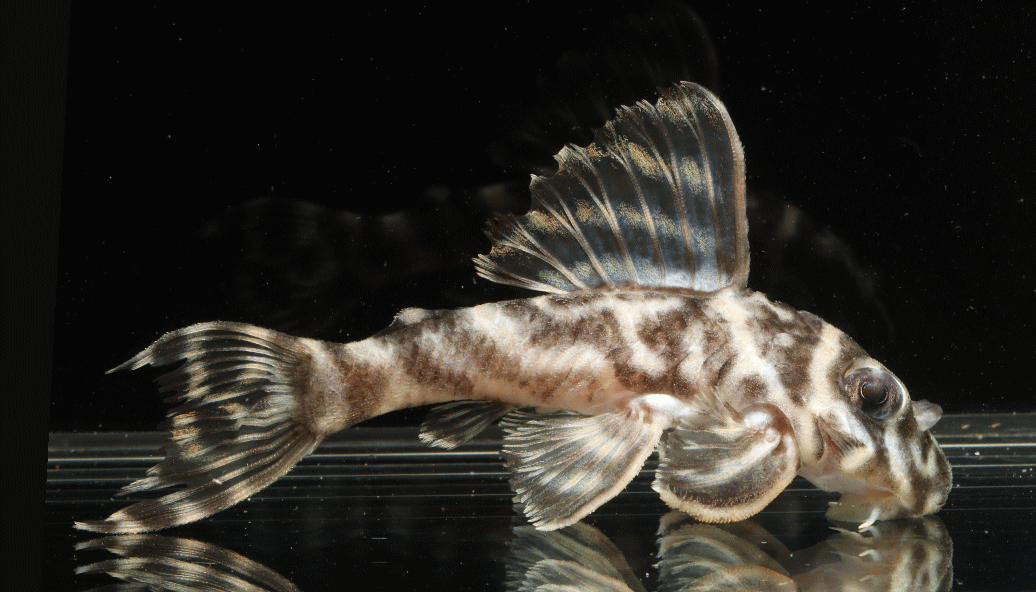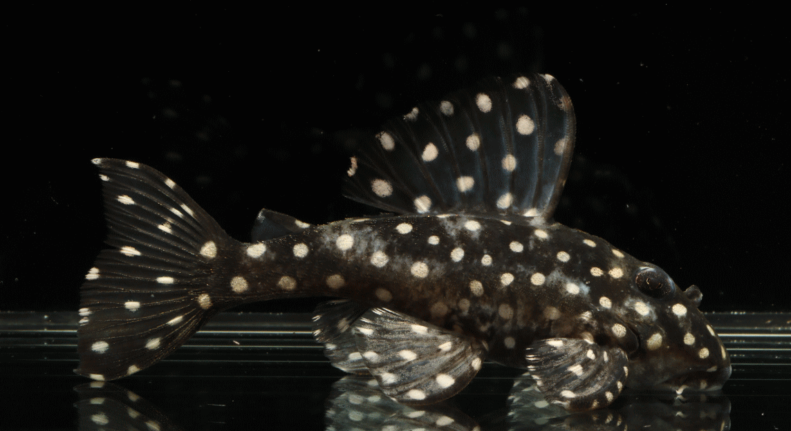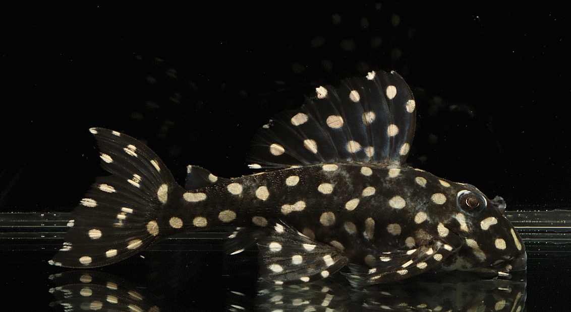 ② イエロービッグスポットスタープレコ シナルコ Wild 8.2cm 特別価格¥9800 リオシナルコ産のワイルド Hypancistrus contradens で、飼いこみの大きなメス個体 ↓