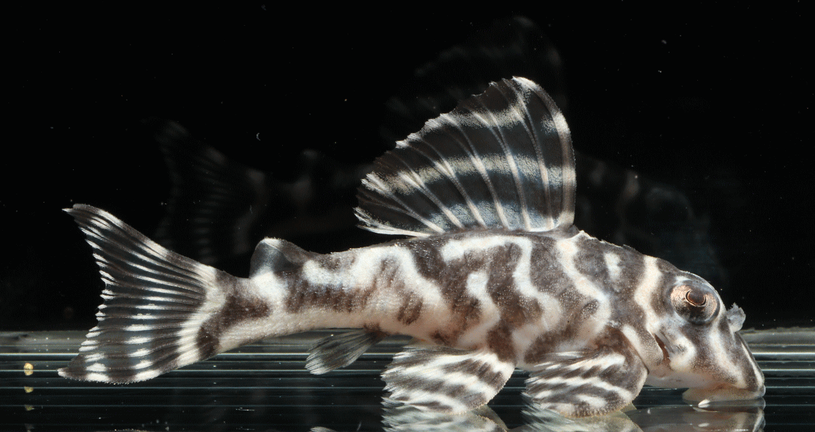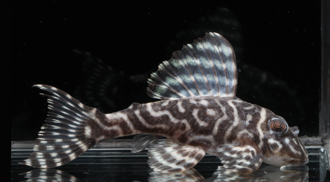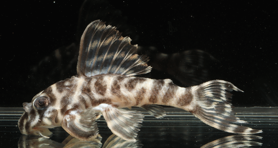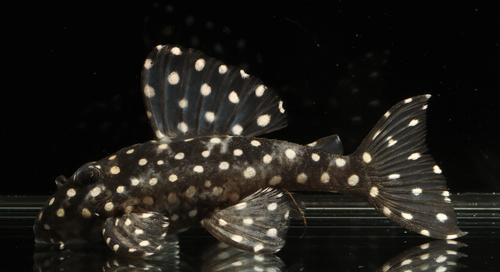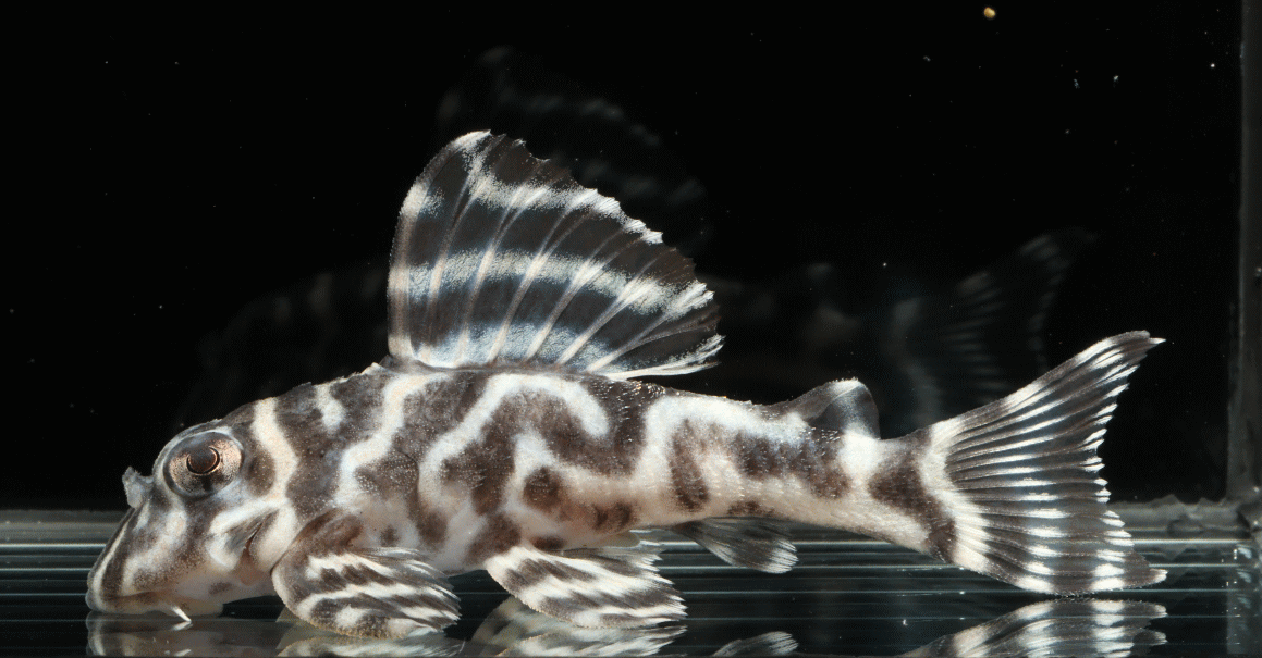 ② イエロービッグスポットスタープレコ シナルコ Wild 8.2cm 特別価格¥9800 リオシナルコ産のワイルド Hypancistrus contradens で、飼いこみの大きなメス個体 ↓