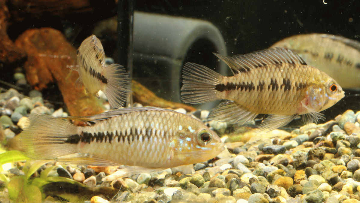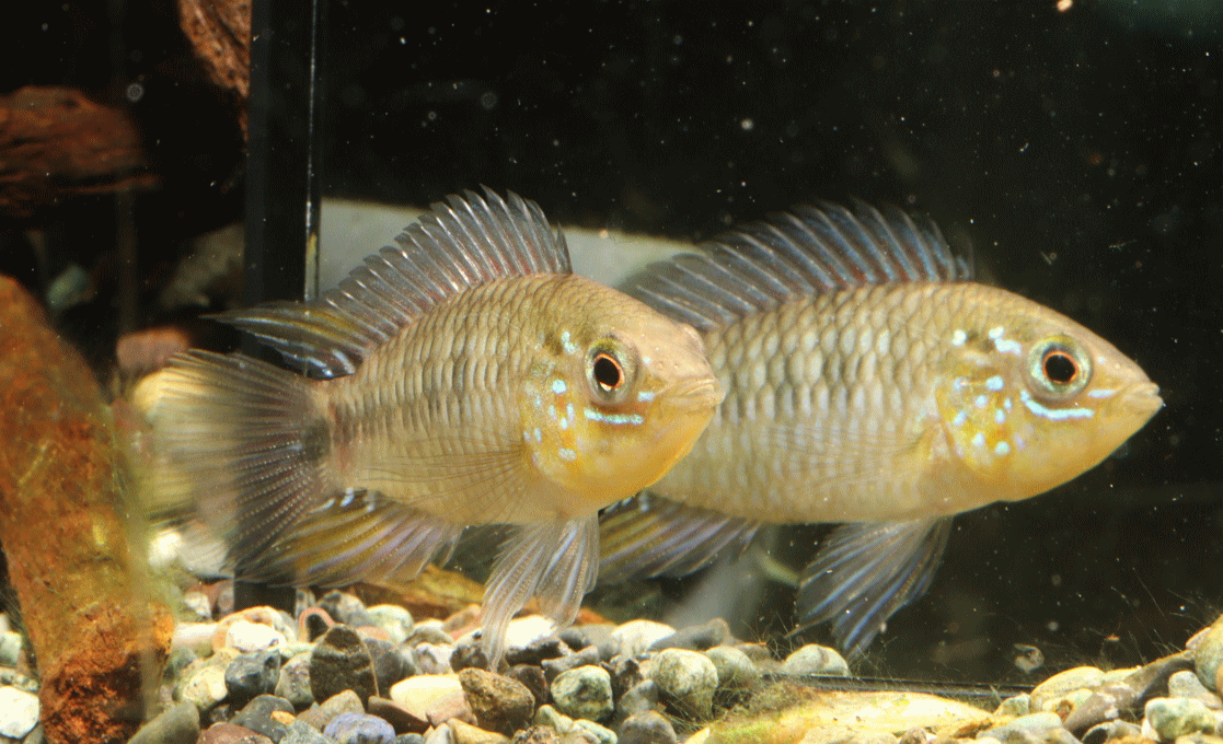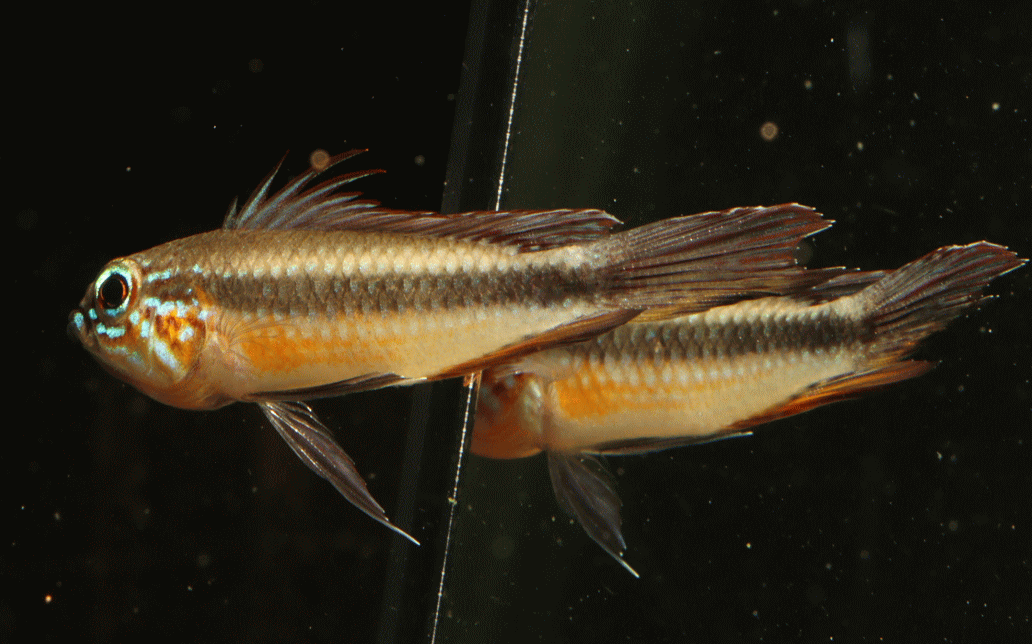② アピストグラマ ボレリー パンタナール ミモゾ No1 4cm ペア¥12000 ブラジルで採集される野生のボレリーです。昨年AquaFuna便で来たもので、しっかり飼い込み良い感じに仕上がってきました。メスも大きくバランス良い