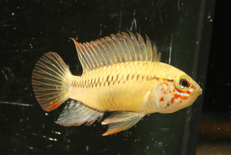 ① Apistogramma cf. sp. D24 Rio便 4.3cm 特別価格 ペア¥13800 隈でて綺麗な若オスです。メスもそこそこ大き目でバランスよくおススメ
