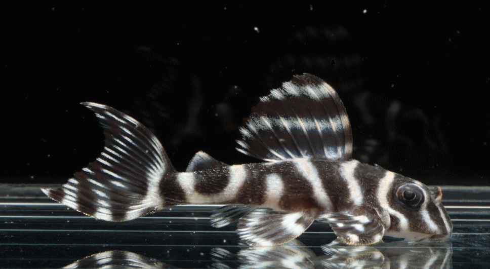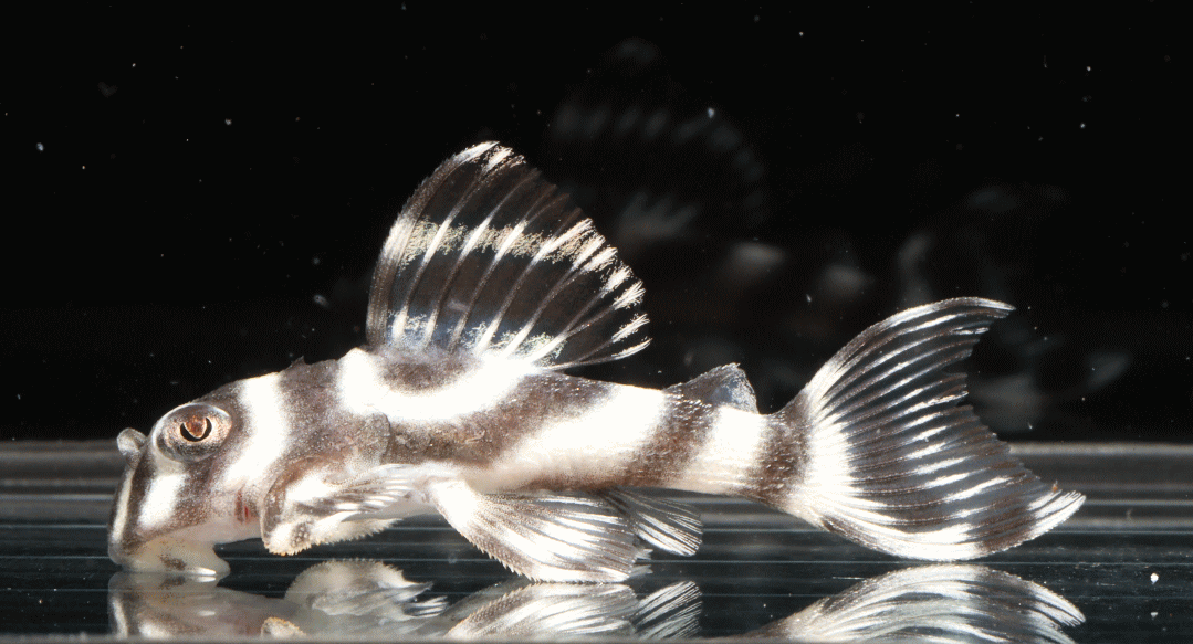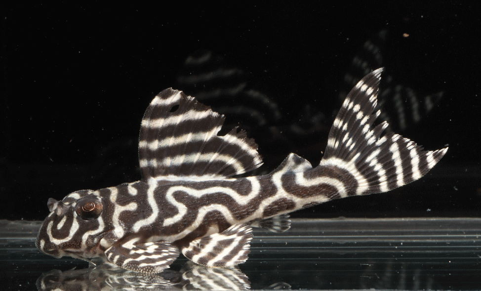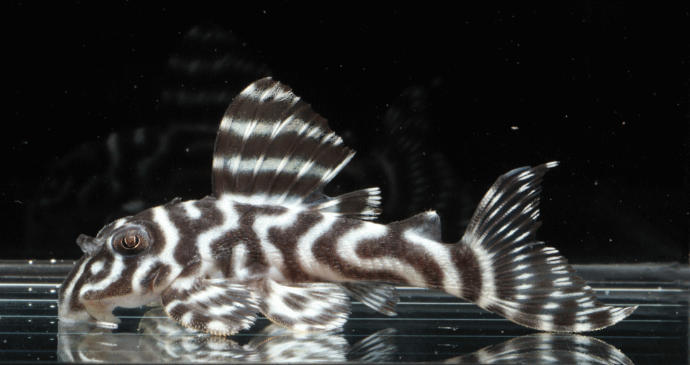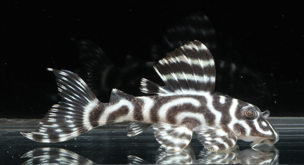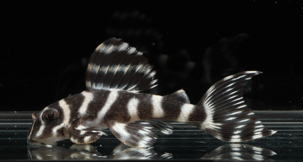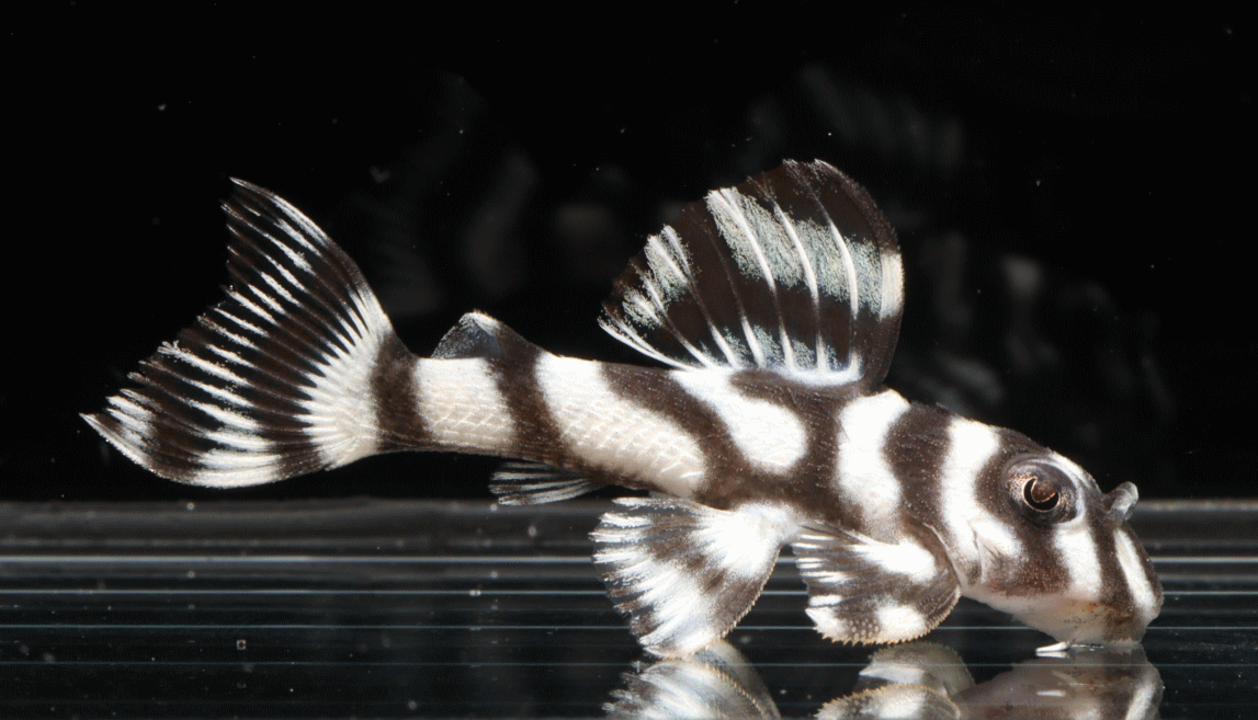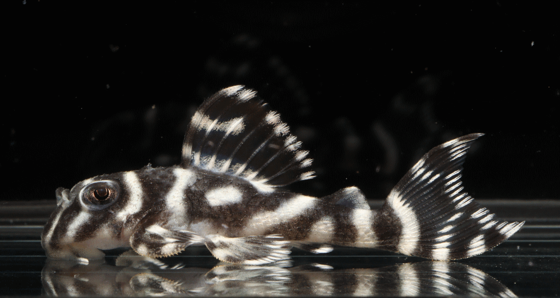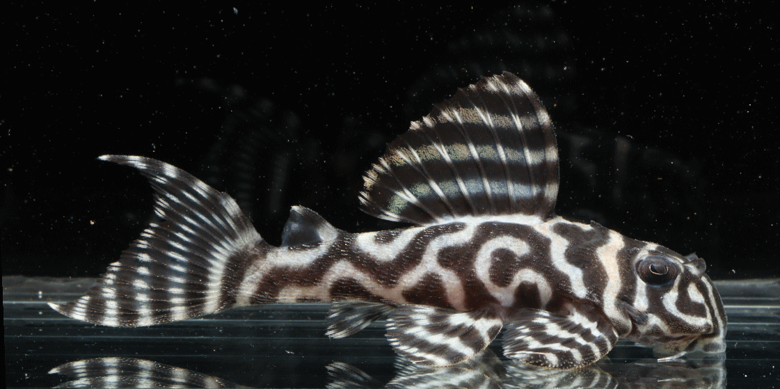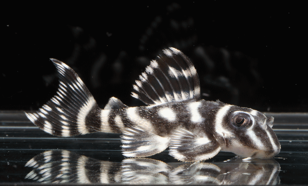 No5 4.5cm 特別価格¥14800 背ビレが物凄く変わっている。柄自体はメガクラウンゼブラの特徴なのに、白黒が反転してホワイトエッジになってる・・・。ちなみに尾びれもホワイトエッジ ↓