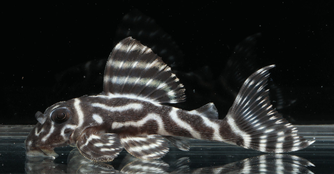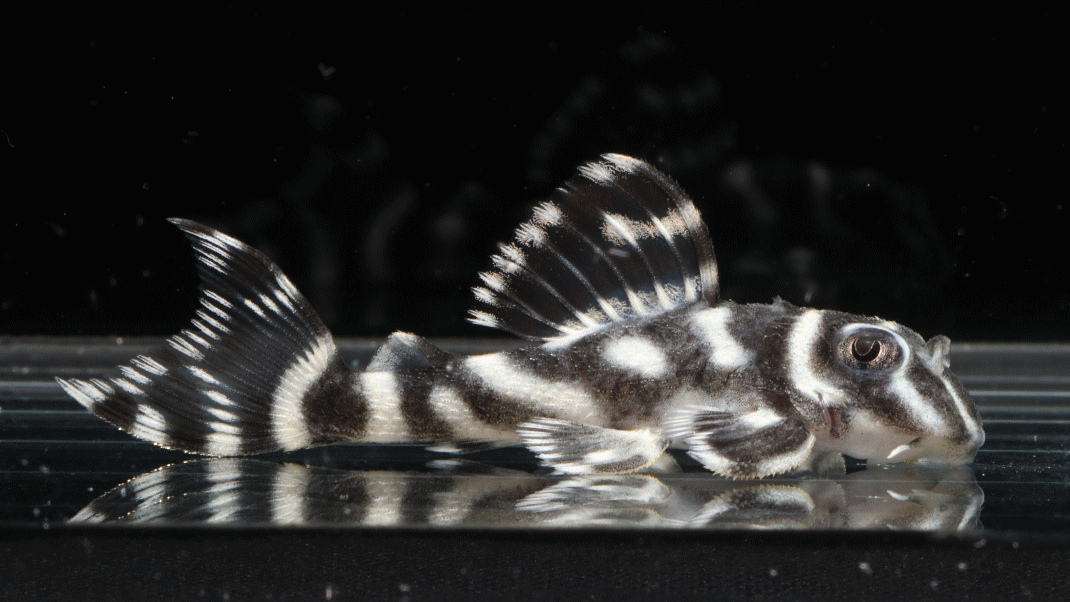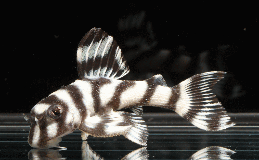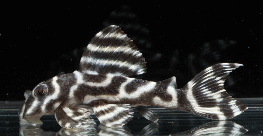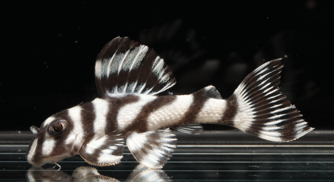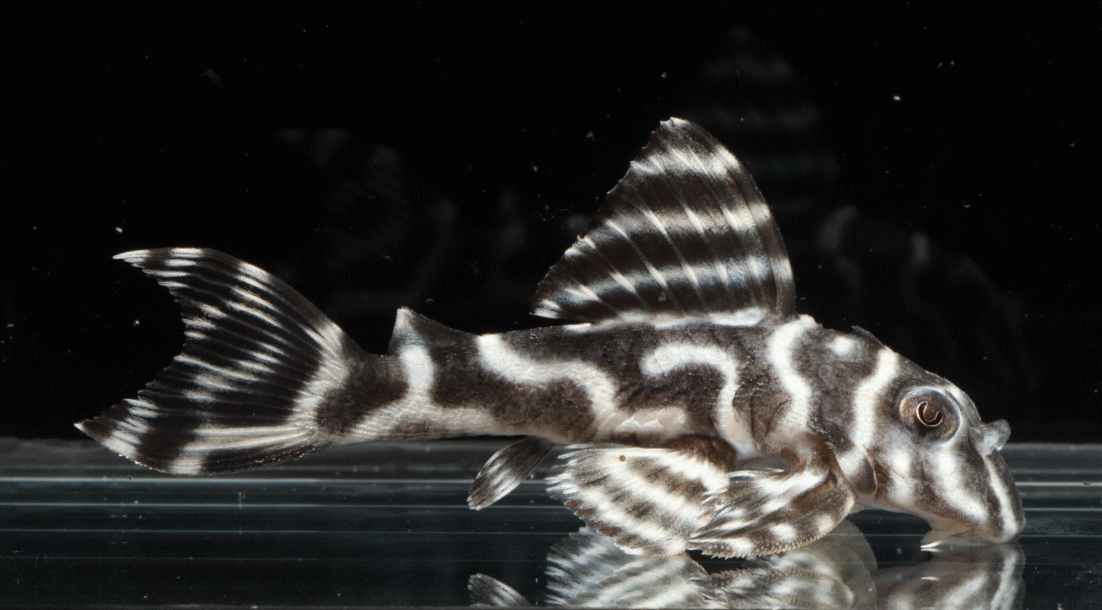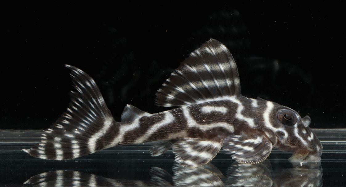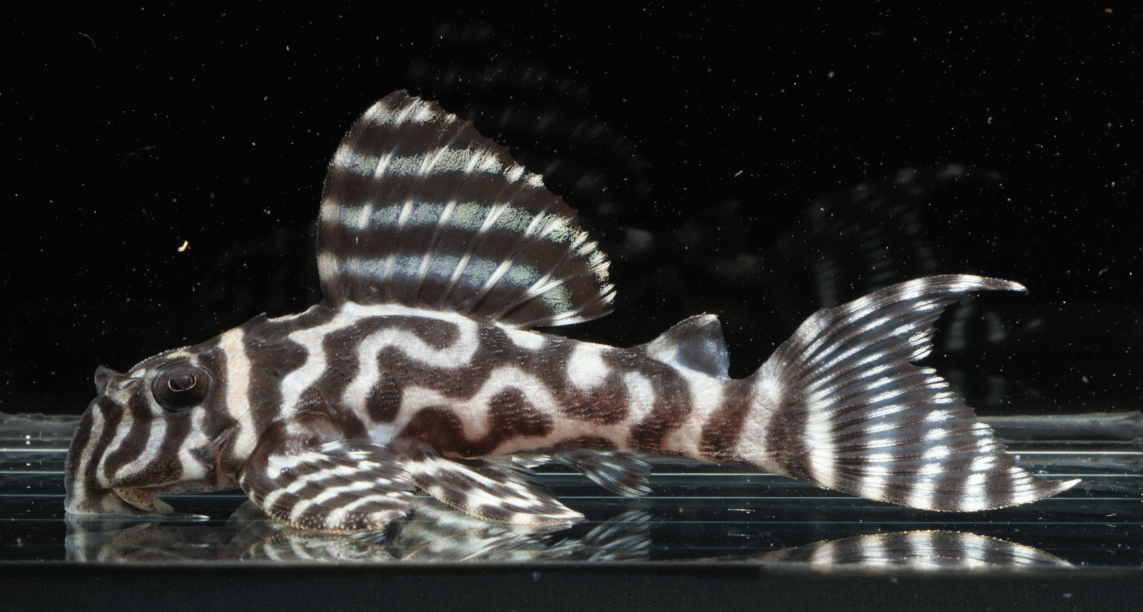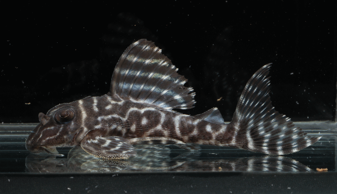 No5 4.5cm 特別価格¥14800 背ビレが物凄く変わっている。柄自体はメガクラウンゼブラの特徴なのに、白黒が反転してホワイトエッジになってる・・・。ちなみに尾びれもホワイトエッジ ↓