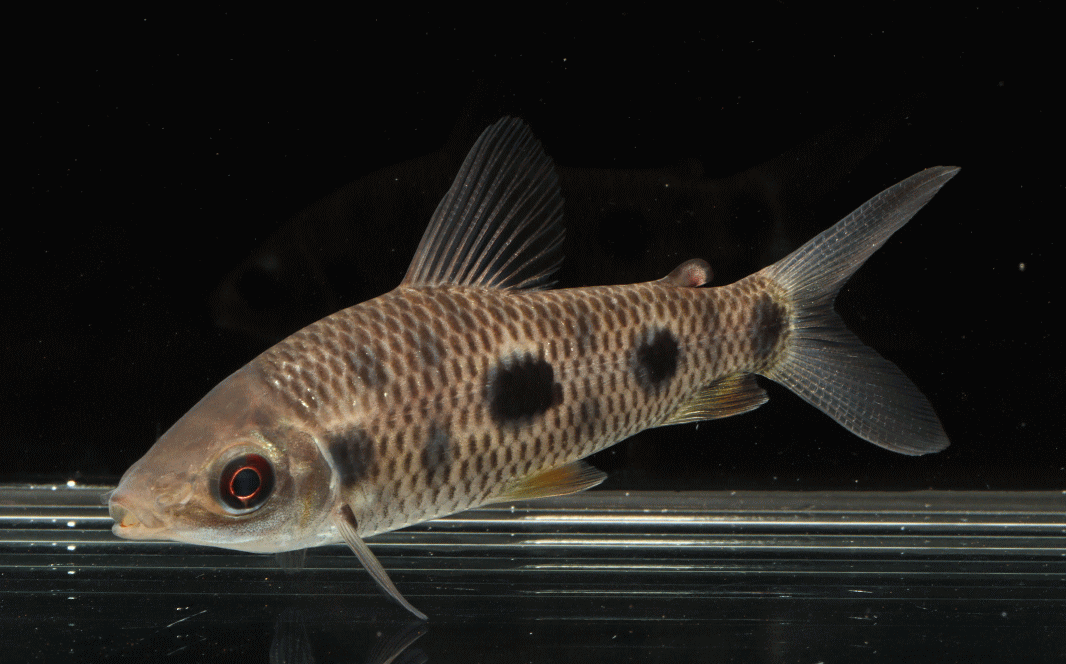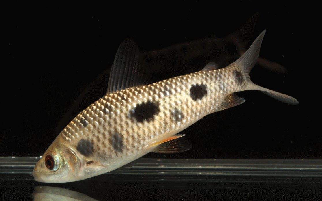 こちらはcfゴッセイ( Leporinus cf. gossei )として入荷しました。マロニーリバーの上流タパナオニーリバーからなので これもゴッセイなんじゃね?って思いましたが、スポットがより楕円形で こっちのほうが体型や尾びれがスレンダーで鱗の感じが違う気がします。目もゴッセイより若干上にありますね! ↓