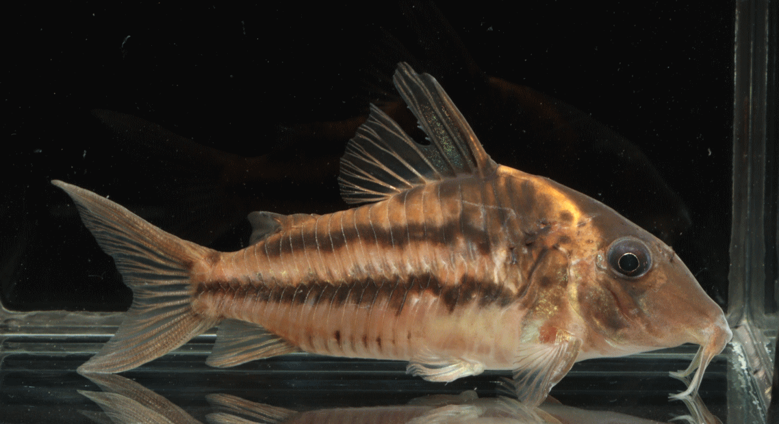 ① コリドラス ビファシアータス ホロタイプ MLサイズ 特別価格¥8980 ラインが側線を挟んで上下にはいるビファシアータスのホロタイプ達です。2匹のみ
