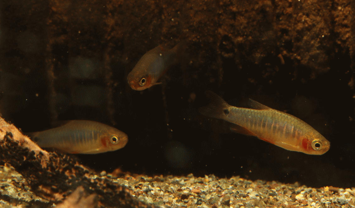 ③ ダニオ エリスロミクロン 東南アジアCB 1.5~2cm程 3匹¥1000 野生採集の Danio erythromicronではなくアジアブリードもの。体型はちょっと異なるけれど、大きいのである意味綺麗だったりしますw ↓