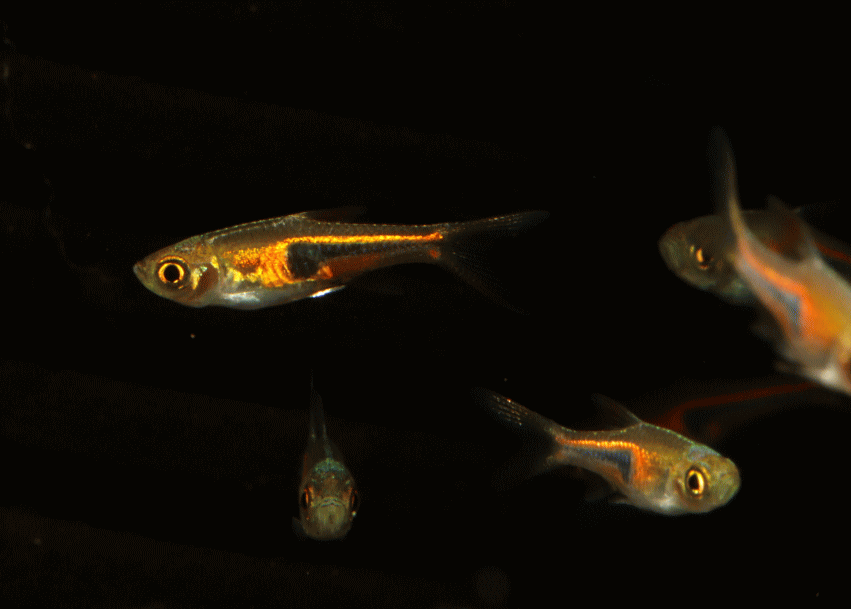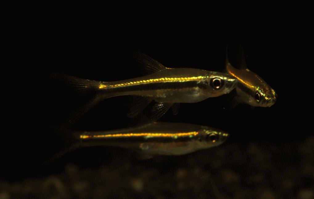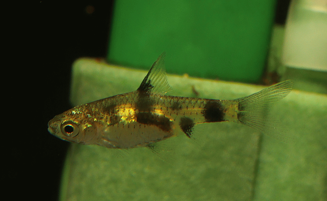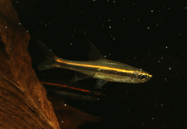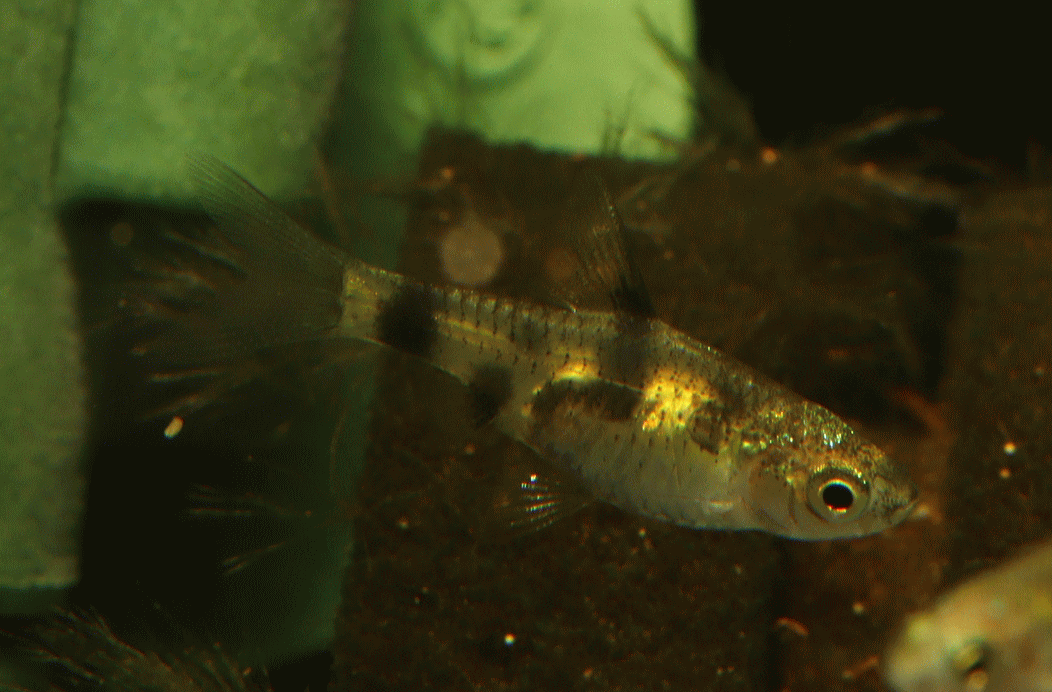 ⑥ ラスボラ アギリス 3~3.5cm程 3匹¥1200 Trigonopoma gracile。ブラック&ゴールドラインの美しい種で、昔ながらの名 アギリスとして販売中。残り2セットほど ↓
